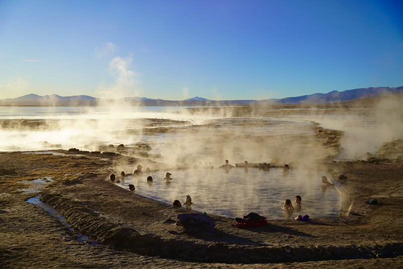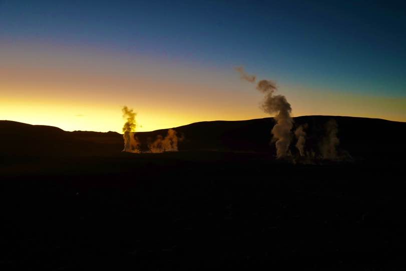 Unsere erste Station des Tages waren die Geysire von Sol de Manana. Wir wollten bei Sonnenaufgang hier sein, um die Geysire in voller Pracht zu erleben. Je kälter die Luft, umso beeindruckender die Dampfwolken… Deshalb war der Sonnenaufgang hier besonders dramatisch.