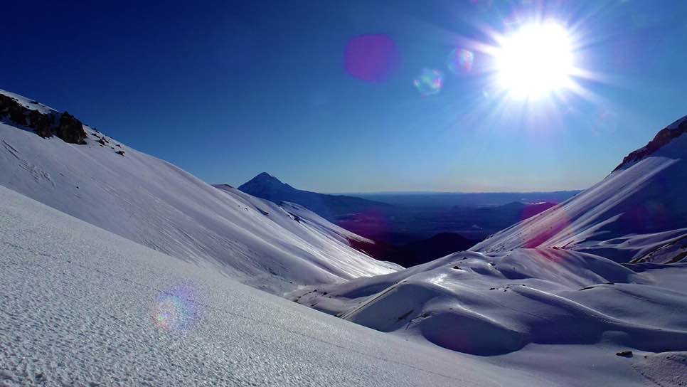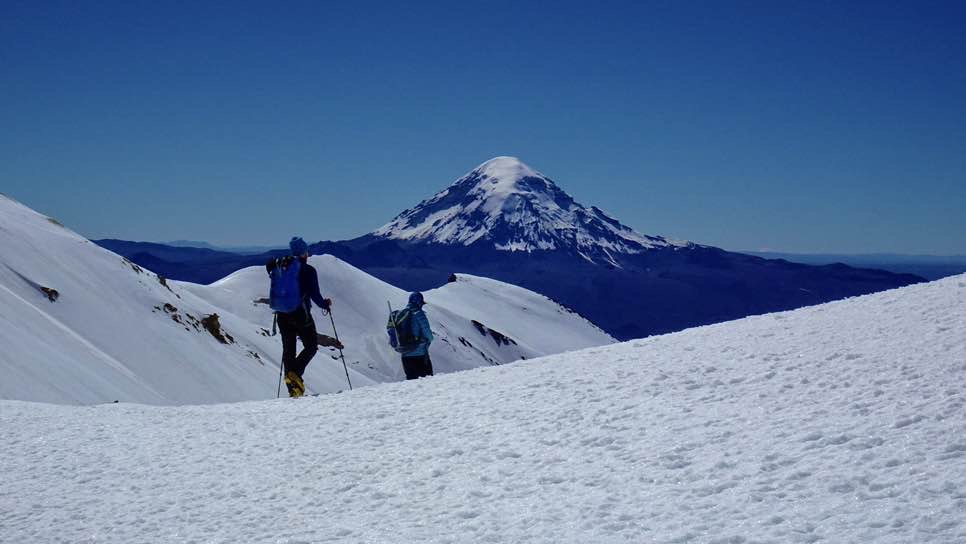 Normalerweise kann der Acotango mit nur minimalen Schneekontakt bestiegen werden. Heuer liegt wirklich viel Schnee, der aufgrund der starken Winde und der Sonneneinstrahlung auch schon langsam Büßereis aufkommen lässt. Wir konnten aber ohne Probleme aufsteigen. Ein schöner, relativ langer Aufstieg von 4 Stunden hat uns bis auf den Gipfel mit 6052 Meter gebracht.