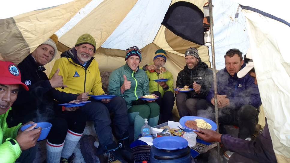 Schon um knapp vor 09:00, nach nur 6 Stunden und 20 Minuten, erreichten wir wiederum unser Hochlager, wo wir von unserer Kochmannschaft mit Gratulationen und auch einer warmen und stärkenden Suppe erwartet wurden.