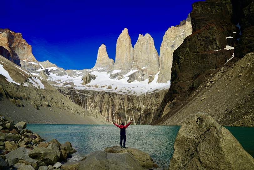 Nach dem Frühstück sind wir binnen knapp 1,5 Stunden vom Camp Chileno zum Mirador Base de Torres - Fuß der Türme - aufgestiegen. Von hier hatten wir einen perfekten Ausblick auf die imposanten Granittürme, die Namensgeber für den Nationalpark Torres del Paine sind.