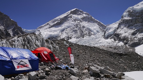 Heute Nachmittag habe ich noch eine längere Runde durch das Basislager gedreht, mit Besuch bei den „Icefall Doctors“, die den Khumbu Eisfall versichern, um Infos aus erster Hand über den Zustand des berüchtigten Eisfalls, den wir am Freitag passieren möchten, zu bekommen. Auch habe ich Lakpa Rita Sherpa, den „besten“ Sirdar am Everest besucht und mich lange mit Ihm unterhalten. Lakpa Rita ist DAS Aushängeschild von Sherpa Adventure Gear, die auch Clearskies seit Jahren ausrüsten und