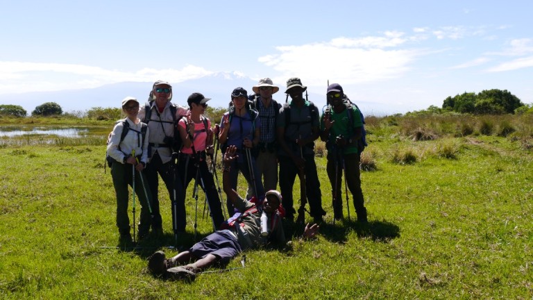 Heute Morgen wurden wir von traumhaftem Wetter und perfekten Blicken auf den Kilimanjaro begrüsst. Nach einem recht späten Frühstück um 8 Uhr machten wir uns mit unserem Ranger Good Luck und unserer Mannschaft auf den letzten Abstieg. Diesmal ging es bei strahlend blauem Himmel durch den Regenwald und wir haben die immer dicker werdende Luft genossen.