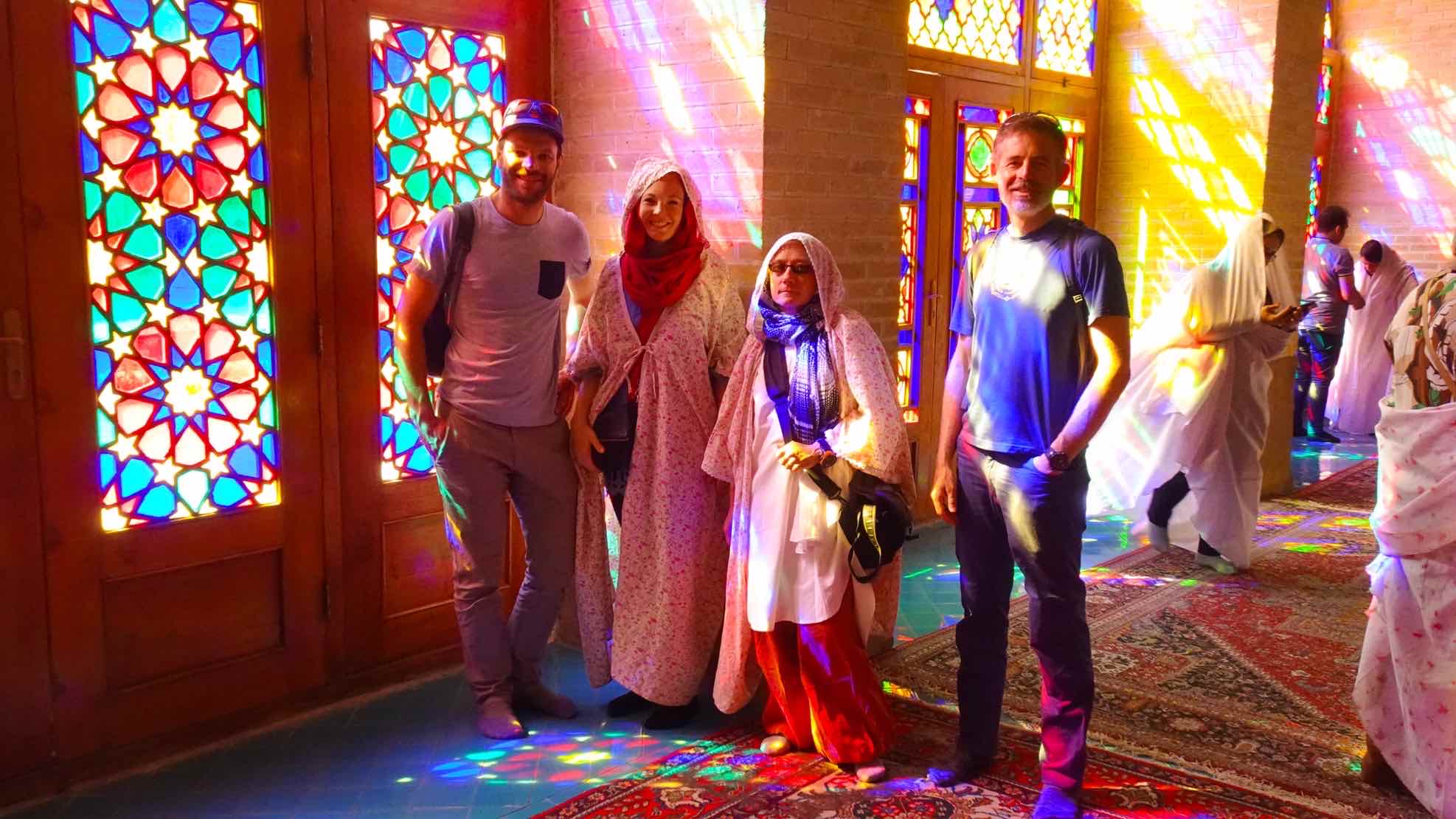 Wir haben heute unsere Besichtigung von Shiraz fortgesetzt. In der Früh sind wir zu Fuß an der großen Karim-Khan Zitadelle (Festung) vorbei marschiert, durch einen großen Teil der Innenstadt, bis zur berühmten Nasr-al-Molk Moschee.