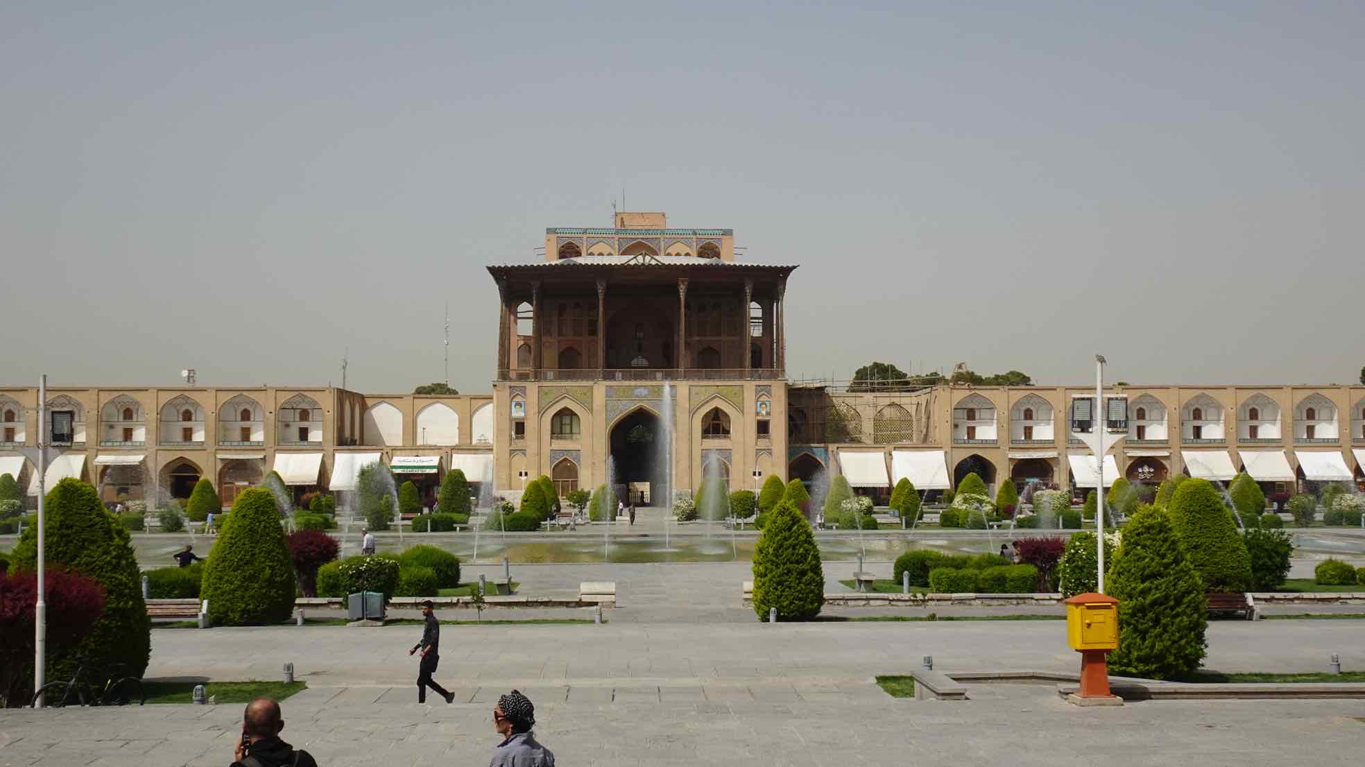 Danach sind wir am großen Imam-Platz weiter, der Platz gehört zu den weltweit größten Plätzen, bis zur Sheikh Lotfallah-Moschee, ebenfalls ein prächtiger Bau. Und zuletzt, als letzten Höhepunkt am großen Platz, haben wir den Ali-Qapu Palast besichtigt, ein fünf-stickiger Bau, der den Platz dominiert bzw. Von dessen Terasse die Könige einen tollen Überblick haben konnten.