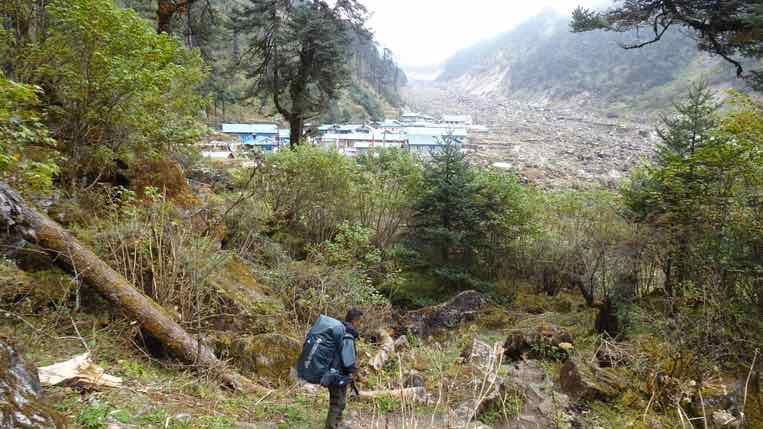 Langer Abstieg von Thuli Kharka (4200m) bis nach Khote (3600m) am Talboden des Hinku Tal.