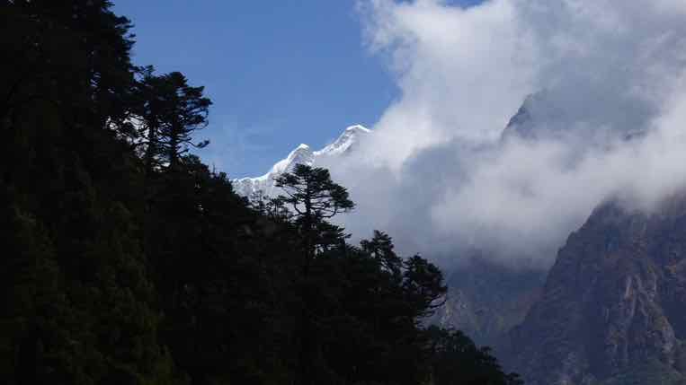 Der kleine Pfad führte uns am Berghang entlang nach Norden, über 2 kleine Sättel, von denen aus man bei gutem Wetter erste schöne Blicke auf den Mera Peak, unserem ersten Bergziel hätte. Auf Grund des Nebels haben wir uns dieses Panorama heute nur vorstellen können.