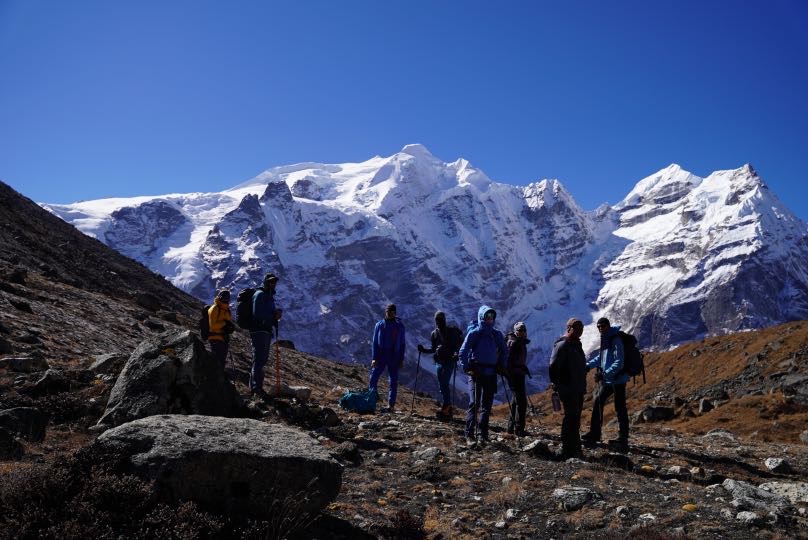Von Khare aus sind wir nach Norden aufgestiegen und in das Gletschertal nördlich der Lodgesiedlung gewandert. Zuerst auf einem kleinen Pfad, bald dann ohne Weg auf einer bewachsenen alten Moräne, bis wir nach einer guten Stunde nicht mehr weiterkonnten, da plötzlich ein riesiger Gletschergraben unseren Weg versperrte. Wir sind dann in einem großen Bogen zurück nach Khare gewandert, bis auf 5250 Meter gestiegen und schließlich auf einem guten Pfad zurück nach Khare abgestiegen. Eine angenehme 3-stündige Wanderung.
