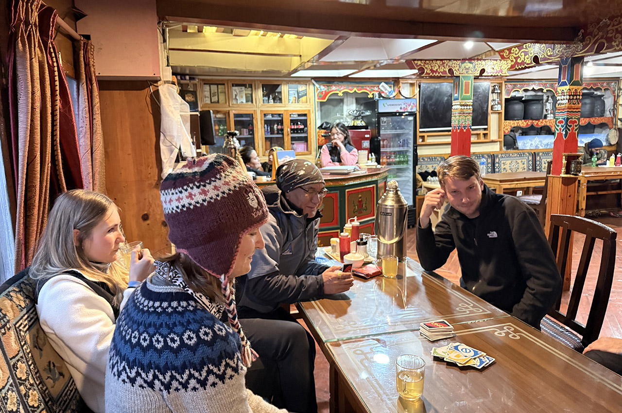 Am späten Nachmittag trafen wir uns wieder in der Lodge, wo wir den Tag gemütlich mit Kartenspielen und viel Lachen ausklingen ließen. Gemeinsam mit unseren Guides und der Gruppe verbrachten wir einen fröhlichen Abend, bevor es zum wie immer sehr leckeren Abendessen ging.