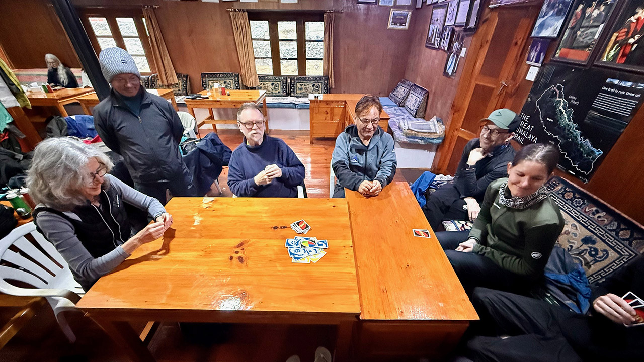 Den Besuch des Klosters von Thame konnten wir heute leider nicht machen, da der Regen etwas stärker geworden ist. Den Rest des Tages werden wir gemeinsam mit Spielen und gutem Essen verbringen, bevor es morgen nach Khunde weitergeht.