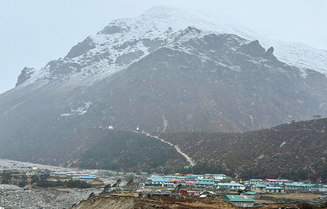 Wie immer haben wir gut gefrühstückt und einen heißen Tee getrunken, um die Kälte besser zu ertragen. Gegen 08:00 Uhr starteten wir unseren Trek in Richtung Thame. Auf dem Weg gab es einige Wegsperrungen aufgrund von kleineren Erdrutschen, die wir aber gut umgehen konnten, sodass wir unseren Trek sicher fortsetzen konnten.