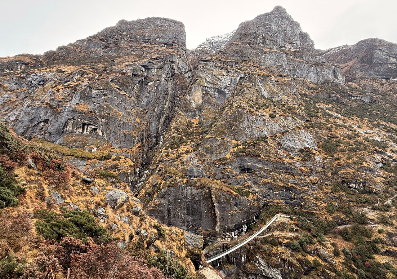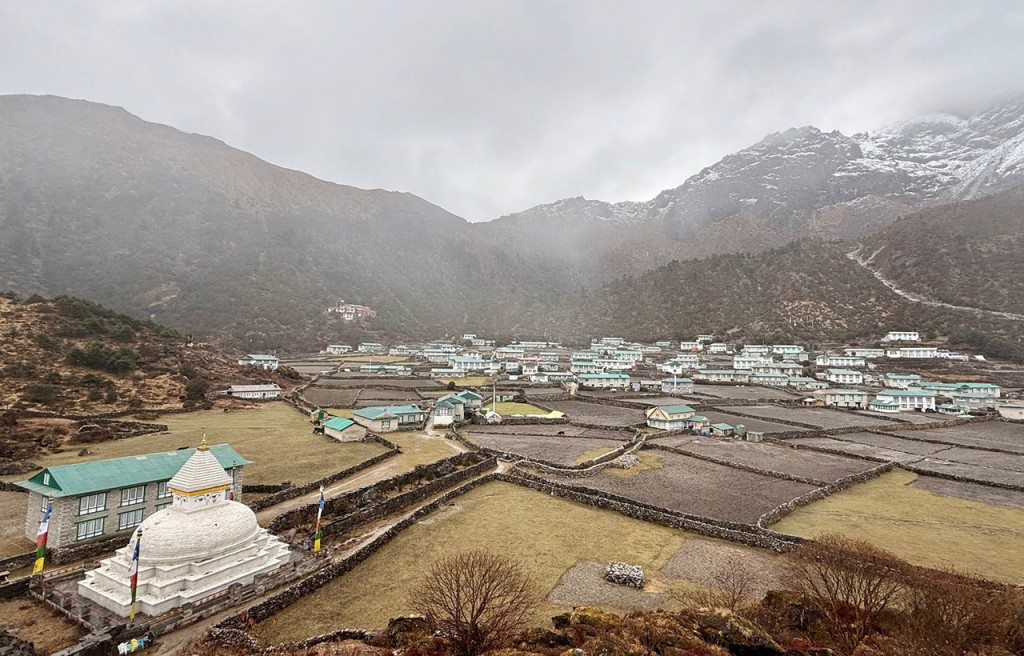 In Khunde angekommen, gab es ein sehr gutes Mittagessen, und trotz Nebel konnten wir den heiligen Berg der Sherpas, den Khumbila (5761 m), sichten. Ein sehr imposanter Gipfel.