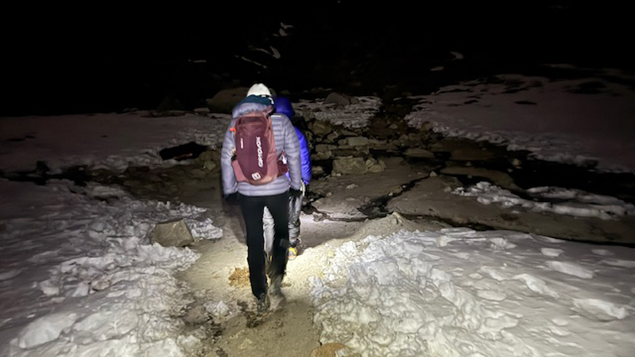 Heute begann der Tag früh. Der Wecker ging um 04:30 und um 05:00 starteten wir den Aufstieg zum Kala Patthar auf etwa 5540 m. Die Strecke dauerte rund 2 h. Da die Sonne noch nicht aufgegangen war, war es während des Aufstiegs sehr kalt.