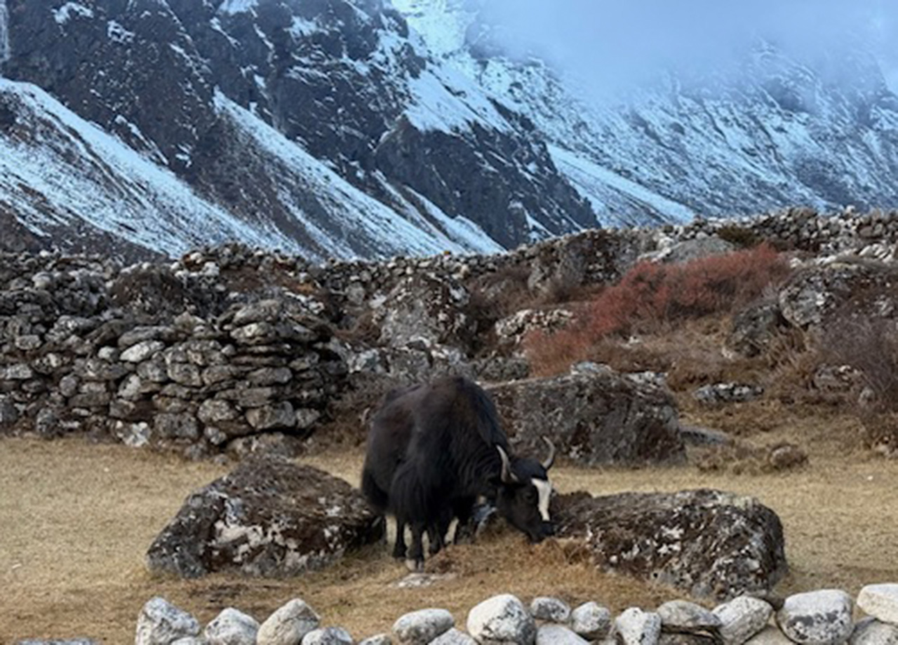 Auf dem Weg passierten wir eine grosse Yakfarm mit geschätzt 500 Tieren, die sich durch uns nicht stören liessen. Heute verbringen wir hier eine deutlich wärmere Nacht mit besserer Luft und freuen uns auf die morgige, kürzere Etappe nach Pangboche, wo uns etwas mehr Freizeit erwartet, um die Landschaft zu geniessen.