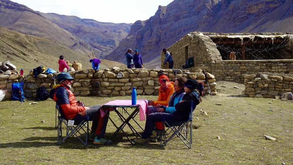 Heute Nachmittag ist Rasten und Waschen bzw. Wäsche angesagt. Uns bleibt eine Woche Trekking. Doch diese Woche wird wohl die härteste unserer gesamten Tour: mehrere hohe Pässe mit 5400 bzw. sogar 5500 Metern Höhe, einige Nächte um ca. 5000 Meter. Insofern ist es gut, dass wir uns nach den vergangenen 2,5 Wochen nochmals ein bisschen ausruhen, bevor wir die letzte Etappe bis Jomsom in Angriff nehmen.