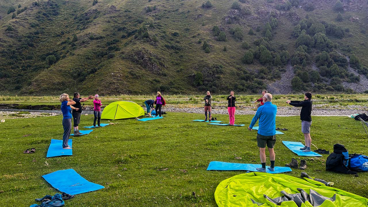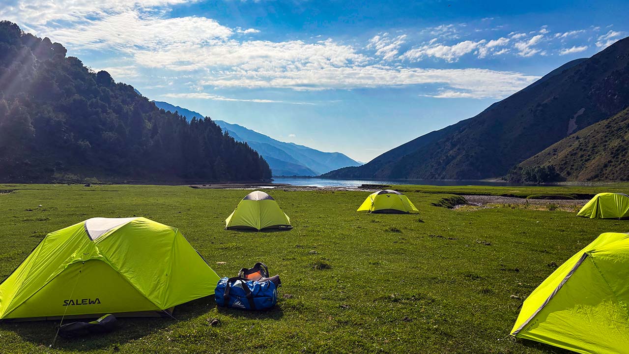 Anschließend sind wir in knapp drei Stunden zum etwas höher gelegenen Kapka Tash See gewandert, an dessen Ende wir unseren nächsten Lagerplatz erreichten. Das Wetter war heute früh etwas bewölkt und es gab einzelne Regentropfen, untertags wurde es aber laufend besser.