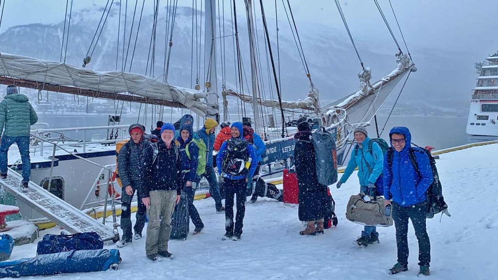 Zwei unserer Gruppe sind bereits vor 2 Tagen nach Tromso gekommen. Der Rest von uns kam heute mit dem Flieger von München. Nach der wie immer spannenden Gepäcksausgabe, Bei der glücklicherweise alle Ski und Taschen angekommen sind, sind wir mit dem Bus in die Innenstadt gefahren.