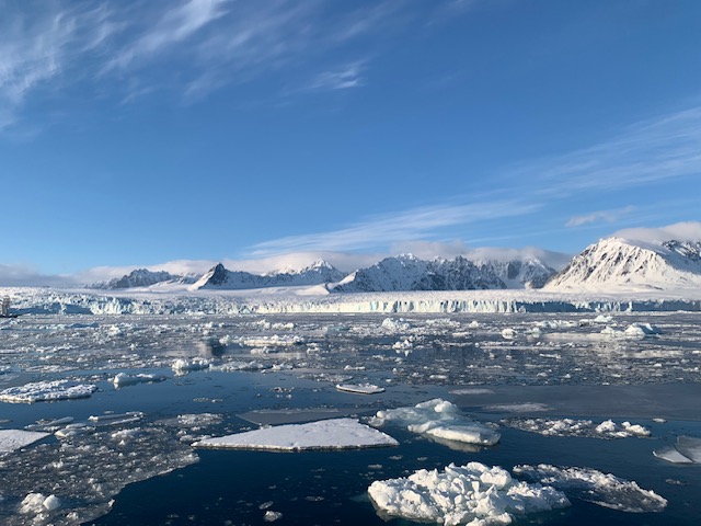 Gestern Abend haben wir noch einen Abstecher zum Lilliehoök Gletscher im Krossfjord gemacht. Hier in der Nähe von New Alesund kommen 4 riesige Gletscher zusammen - eine sehr beeindruckende Kulisse und ein schöner Abschluss für diesen lässigen Skitourentag.